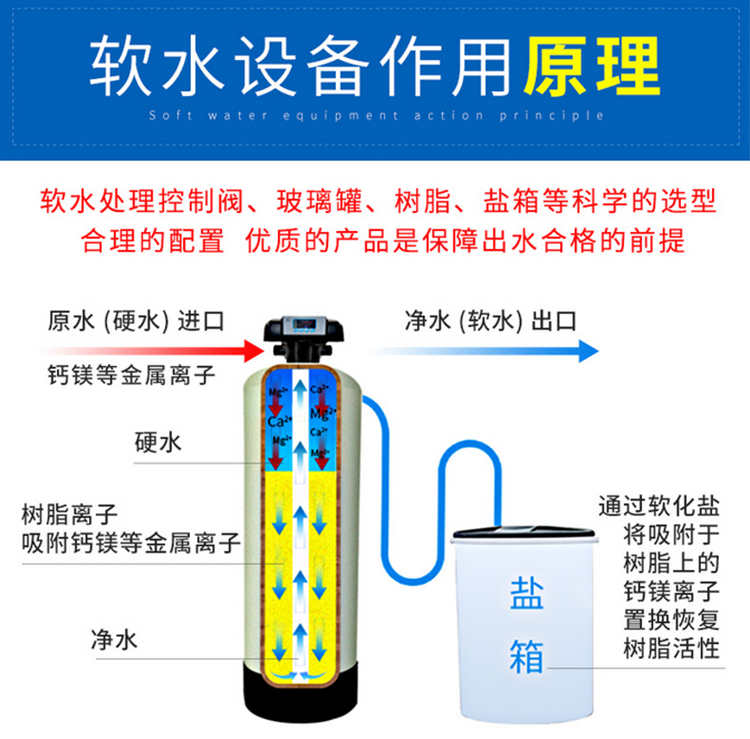 简要描述:软化水设备简介:全自动软水器是一种采用离子交换法去除水中钙镁离子,降低水质硬度的设备。设备由全自动控制阀、过滤罐、阳离子交换树脂、